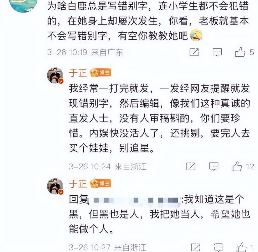 就连于正这样的金牌制作人,也要在微博里为白鹿“硬刚”网友。