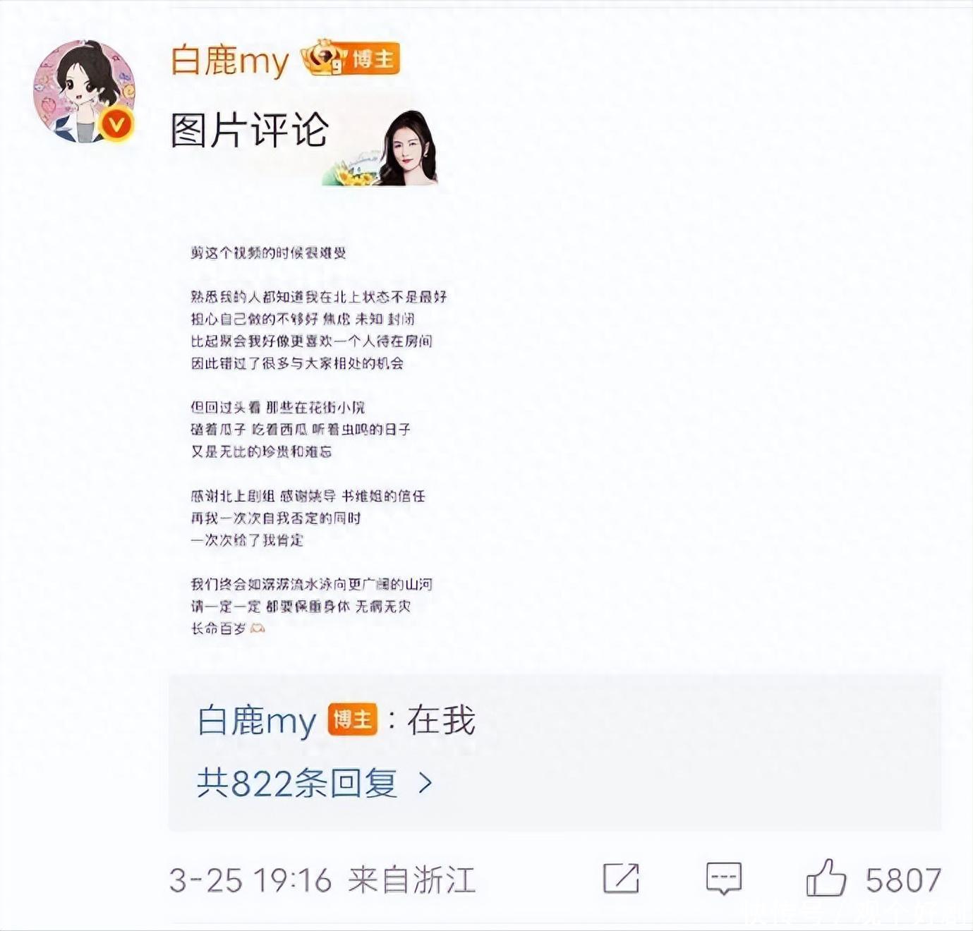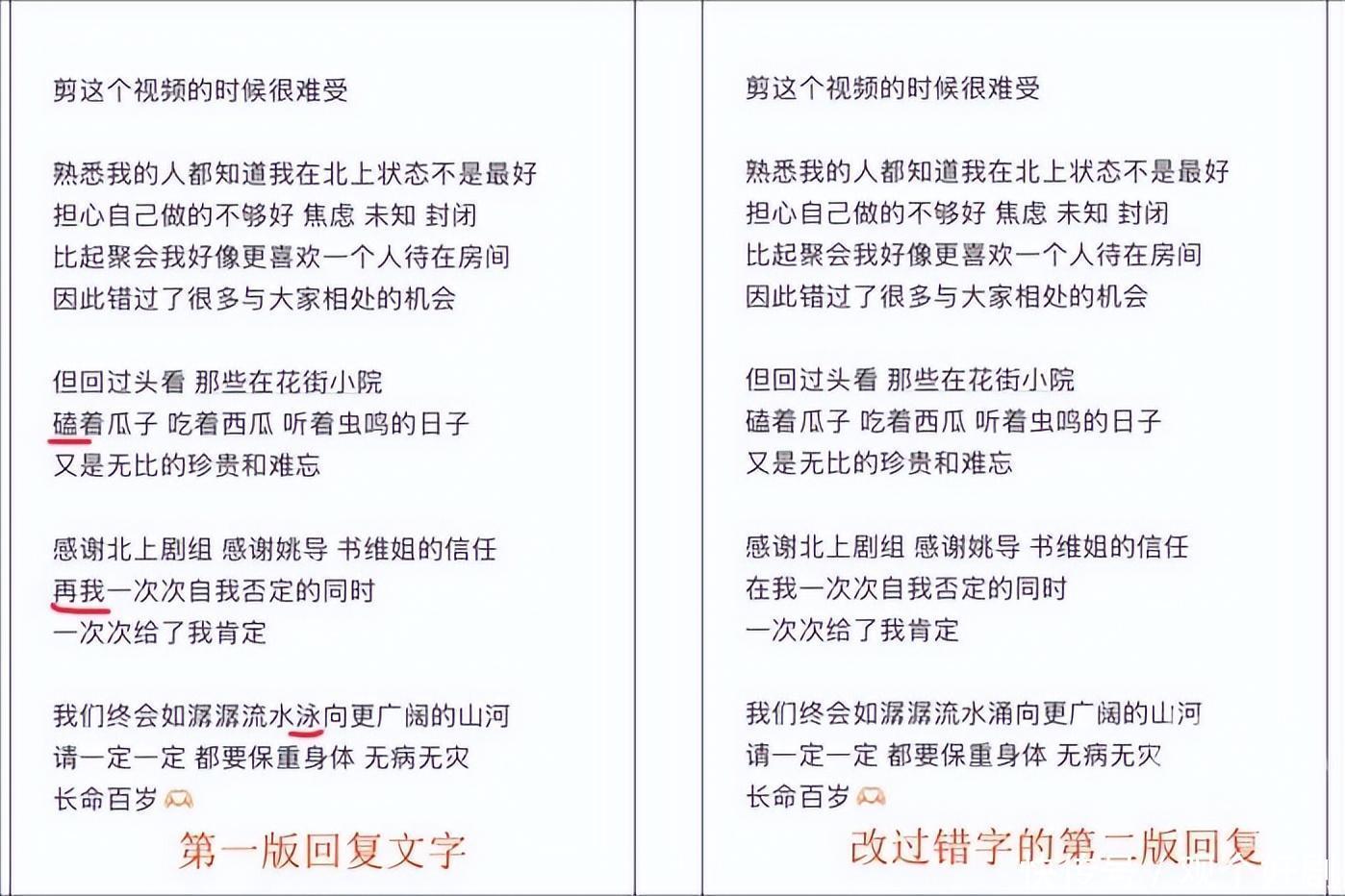 最近白鹿发了条告别角色的动态,错字连篇,把“嗑瓜子”写成“磕瓜子”,“在我”写成“再我”,“涌向”写成“泳向”。